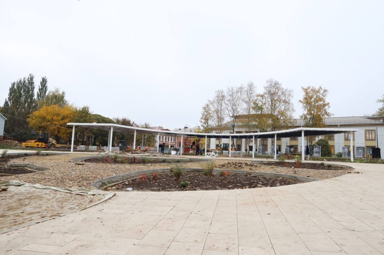 В сквере на Советском установлен павильон для малого и среднего бизнеса, завершается монтаж навеса, начаты оформление пешеходных дорожек и высадки новых зеленых насаждений. В дополнение к сохраненным здесь высадят шесть новых деревьев – клены и черемухи, 82 кустарника, а также обустроят четыре цветника общей площадью 60м2.